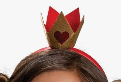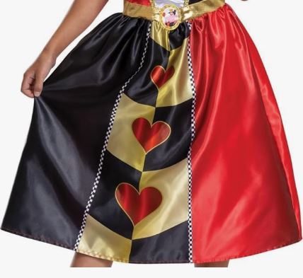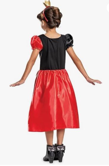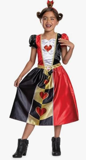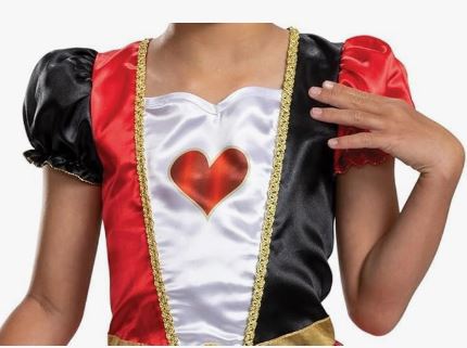 This Kids Royal Heart Majesty Costume includes a long red and white dress with heart print, puff sleeves and an attached collar. To complete the fairytale look a gold crown with heart design is also included.