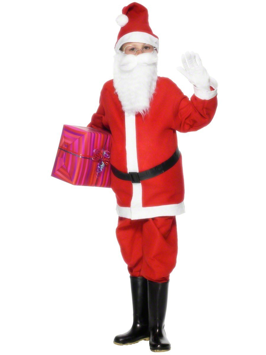 This cute Santa Boy costume consists of a red and white jacket with black belt and a pair of red Santa trousers with an elasticated waist. To complete this festive look a red and white hat with bobble is also included.