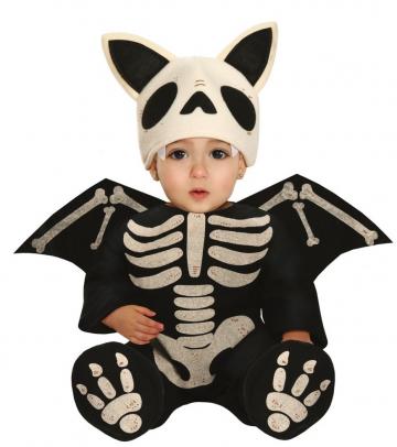 Our cute Skeleton Bat Costume includes a on piece jumpsuit with attached wings and printed bones. Also included is a headpiece with ears.