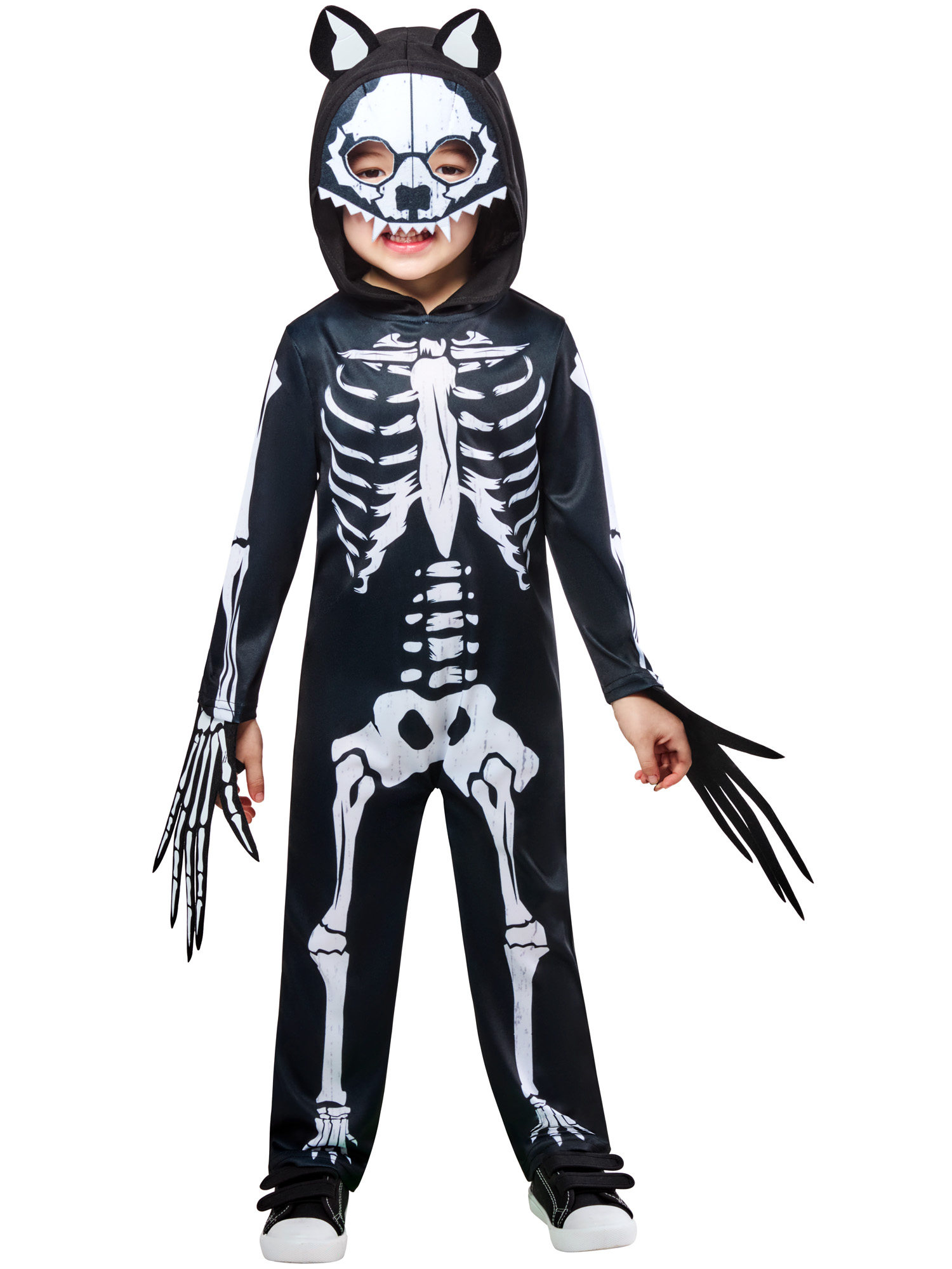 The Skeleton Werewolf Kids features a spooky jumpsuit with a ferocious headpiece and a detachable tail — perfect for howling at the moon and stealing all the Halloween candy.