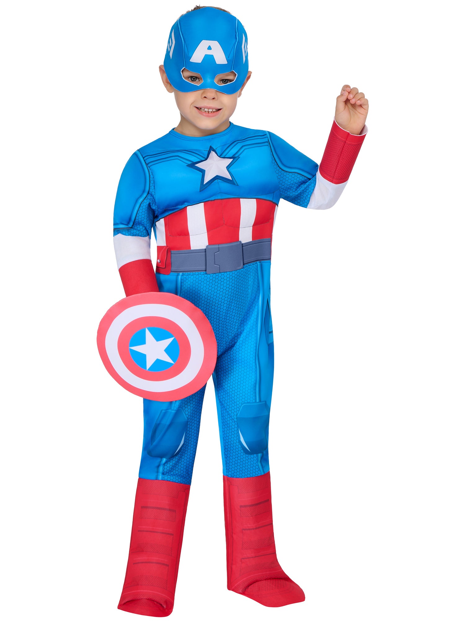 Featuring a full-body printed jumpsuit with muscle padding, padded boot covers, and a foam shield, this heroic ensemble is perfect for Book Days, Halloween, parties, and action-packed dress-up adventures.