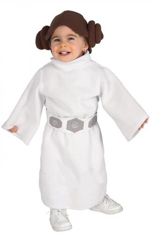 Your little one can start her rebellion early and join the battle against the dark side in this cute robe with trademark hairstyle headpiece, even if she can't quite reach the pedals of her starship yet. The costume includes a dress, belt and headpiece.