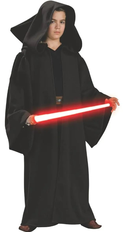 This is a licensed Star Wars Costume. Transform into the Sith Lord with this Deluxe Site Robe. This Costume features a Deluxe hooded robe. Allow your child to become the main villain at the Next Star Wars party as he stirs up some trouble in the galaxy.