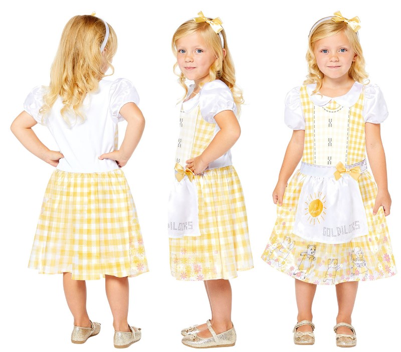 Dress up this Halloween with this beautiful sustainable Little Red Riding Hood Costume. This costumes is reusable and designed to be environmentally friendly, manufactured with 100% recycled material. This costume features a beautiful yellow dress with white puff sleeves and collar with a yellow and white gingham print throughout. To complete the look, a white headband with yellow bow attached is also included.