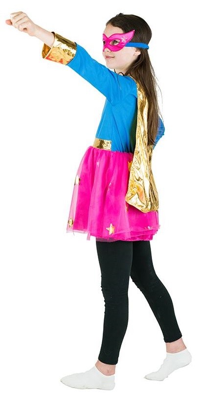 Come to the rescue with our Superhero Costume. Included in this costume is a dress with a tutu style skirt and a gold belt.