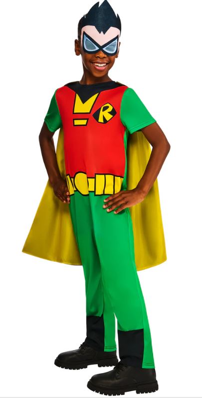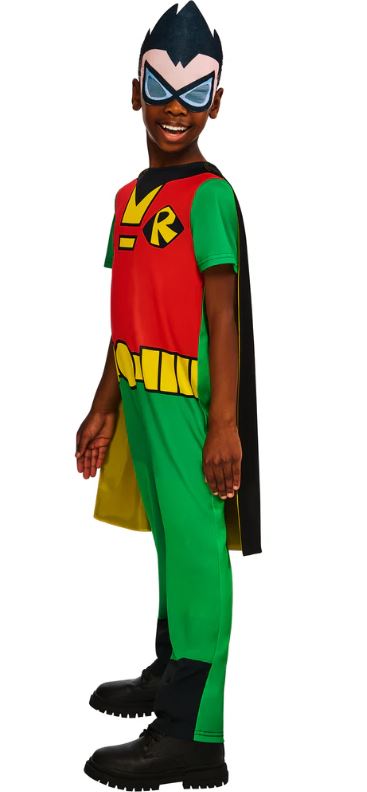 Embark on a heroic adventure with our Teen Titans Go Robin costume for kids! This dynamic dress-up features a vibrant jumpsuit that mirrors Robin's indomitable spirit, while the flowing cape adds a touch of dramatic flair. And no hero is complete without their mask – slip it on and step into the shoes of the legendary Boy Wonder. Join the Teen Titans and prepare for an action-packed journey into the world of crime-fighting and camaraderie!