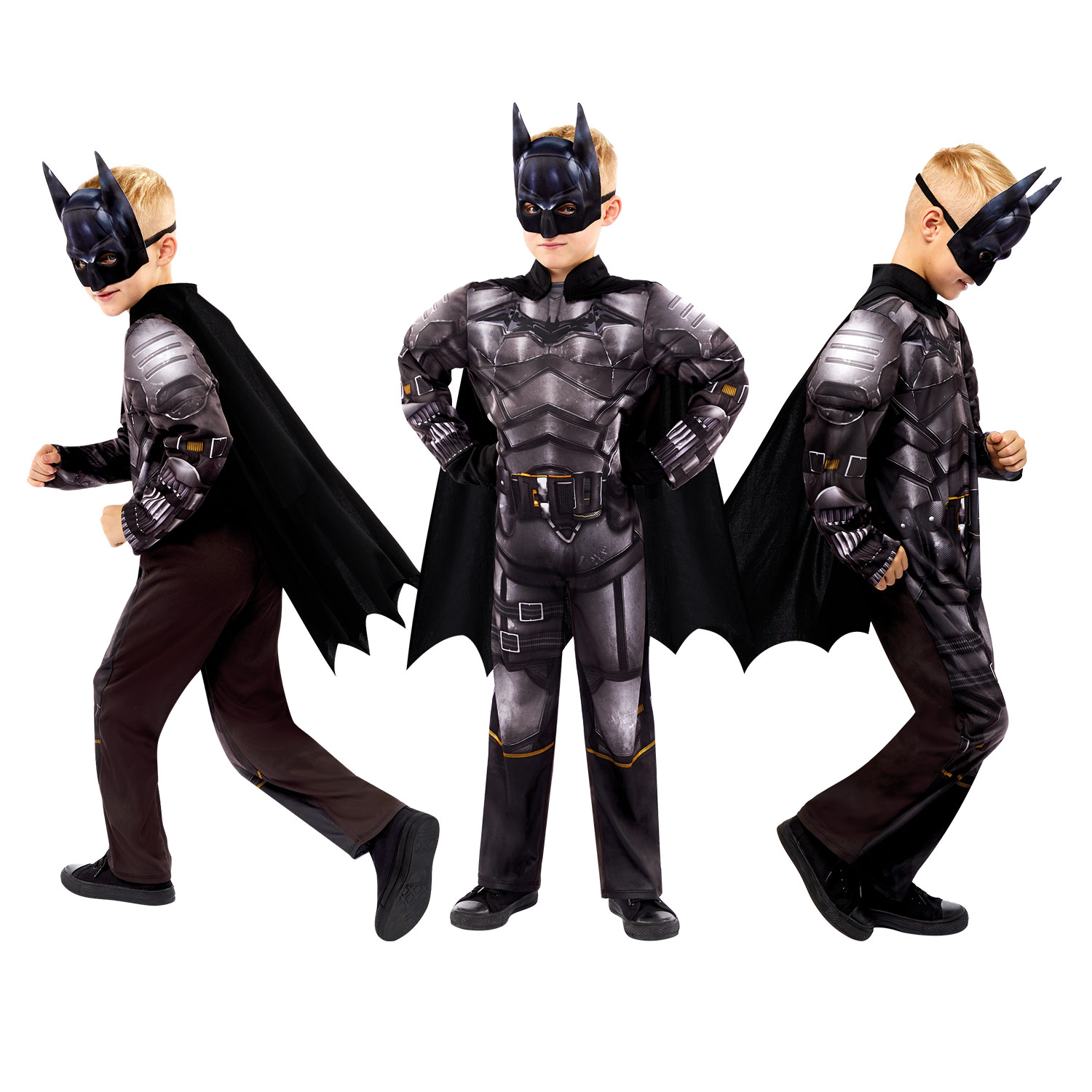 Transform into a DC Comics superhero with our kids The Batman Movie Classic Costume. Included is a Batman jumpsuit with a black cape and to complete the look a black mask is also included.