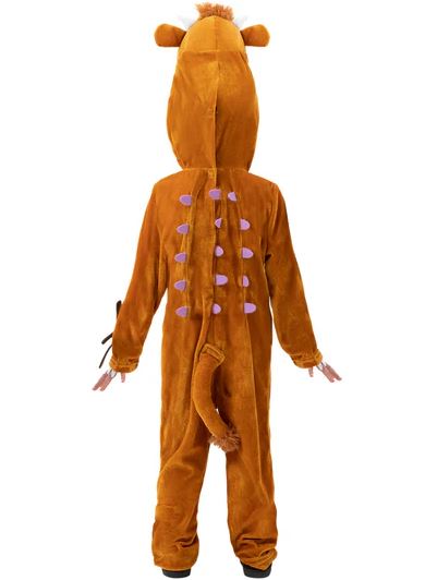 This Gruffalo Child's Costume is an all in one polyester jumpsuit which features a detailed plush character hood and plush tail to match. Also includes trademark Gruffalo purple spikes on the neck area.