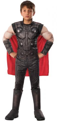 Our Avengers Kids Thor Costume includes a padded jumpsuit with attached boot tops and belt. To complete the superhero look a cape is also included.