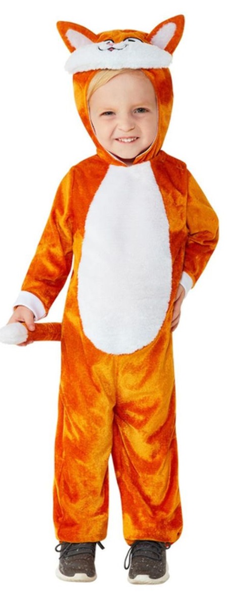 Dress up as a playful kitty with our Toddler Cat Costume,. This puuuuuurfect costume includes a orange jumpsuit with a white belly and an attached tail. The jumpsuit also features an attached Cat hood.