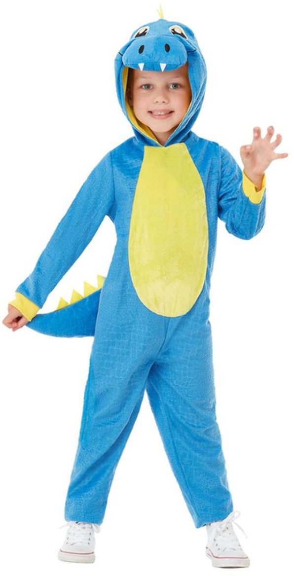 Dress up as a prehistoric critter with our Dinosaur Hooded Jumpsuit. This comfy costume includes an all in one blue textured jumpsuit with a soft yellow tummy and a padded tail on the back with yellow felt spikes.