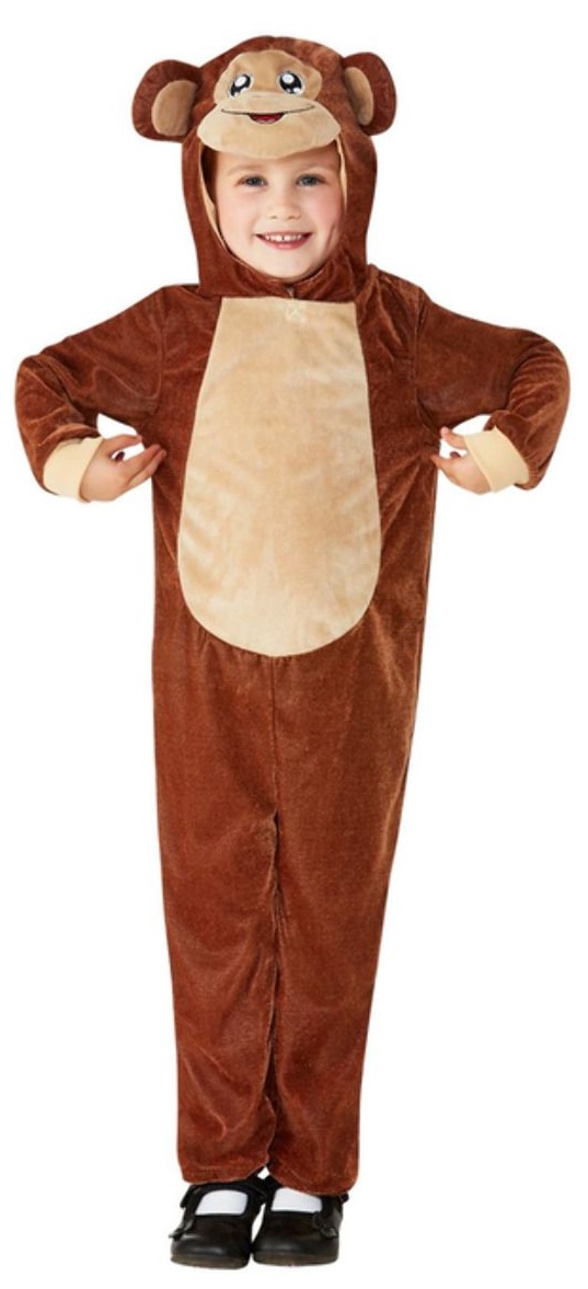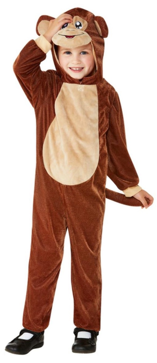 Be a cheeky little monkey with our Toddler Monkey Costume. Included in this costume is a one piece brown jumpsuit and cream tummy. This cute jumpsuit also features an attached tail and a Monkey hood.