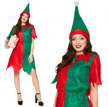 This costume uncludes a green and red dress with collar and bells. A green and red hat with a white bobble is also included to complete the look.
