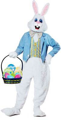 Hop to it this spring with this delightful Deluxe Easter Bunny plus size costume. It includes a fur body suit with attached vest and jacket, a bunny head with mesh eyes and attachable ears, a pair of bunny mittens and shoe covers. Basket with eggs not included.
