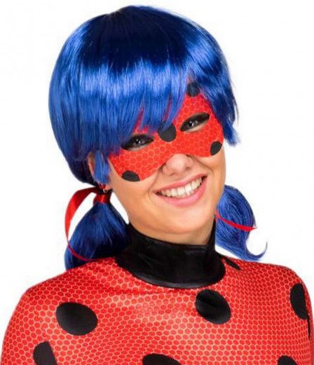 This is a licensed Miraculous accessory. This is the perfect accessory to dress up any ladybug costume! The Mask is made from felt with a black elastic strap across the back of the head and hexagonal pattern throughout. The wig is 100% synthetic which is styled with pigtails and tied with ribbons.