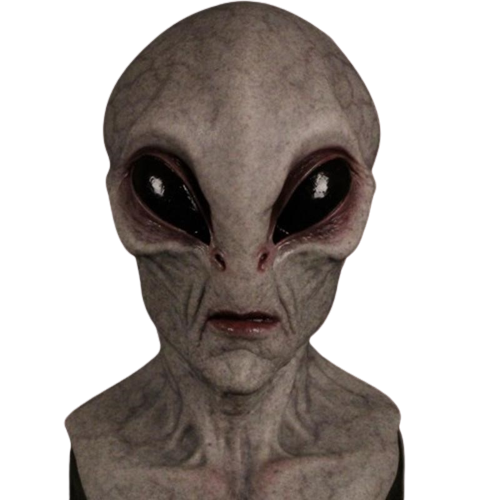 This alien mask features big black eyes and a ashy grey tone of colour which add a spooky touch.