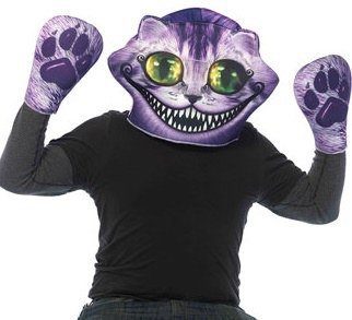 Cheshire Cat foam overhead Mask and a pair of matching paw gloves.
