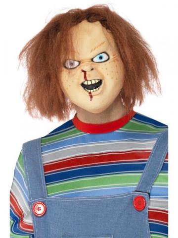 From the hit move Child's Play 2 comes our Chucky mask. This creepy overhead mask features Chucky facial features and attached hair.There is holes in the mouth nose and eyes.