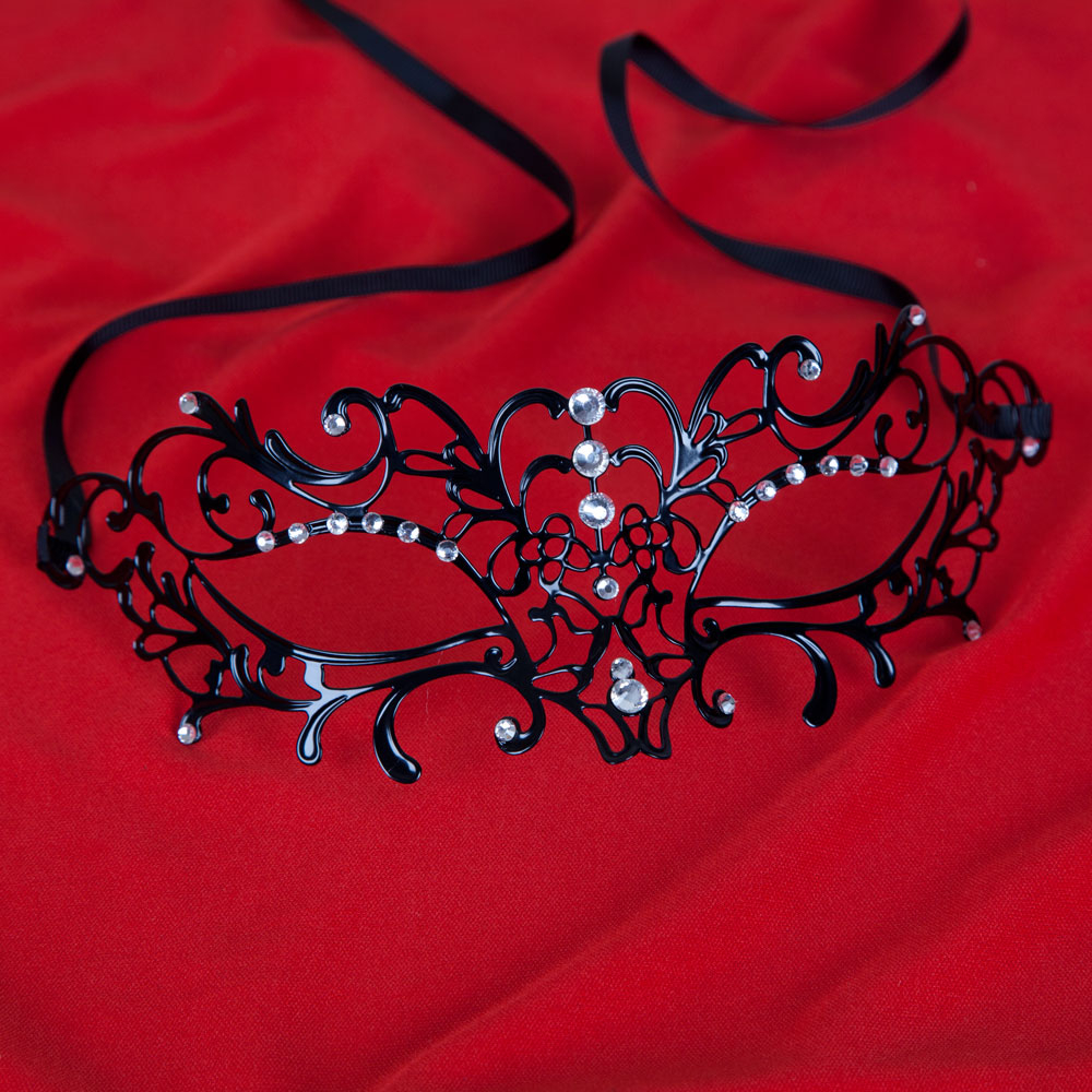 Featuring sparkling diamantes and an intricate black metal design, this luxurious masquerade mask is both lightweight and comfortable to wear — perfect for masquerade balls, themed parties, or elegant costume events.