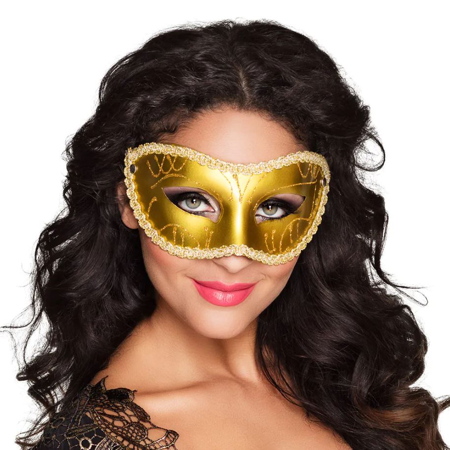 Make sure you're masquerade ball ready with our ladies gold Gabriella Eye Mask.
