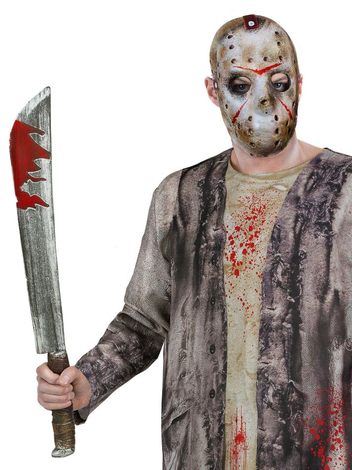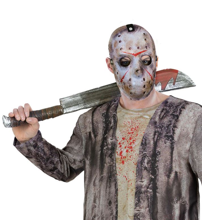 Complete your Jason fancy dress look with our Jason Voorhees Machete & Mask Kit.