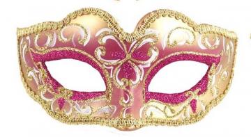 Glitter Eyemask in gold and dark pink with metallic trim.