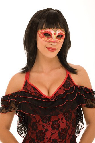 With traditional red satin ties the mask is perfect for your next Masquerade party, Mardi Gras Event or Venetian masked ball.