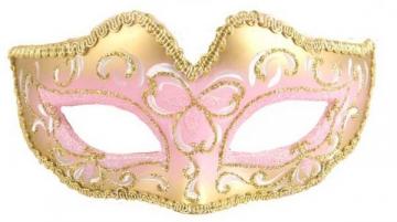 Glitter Eyemask in gold and pink with metallic trim.