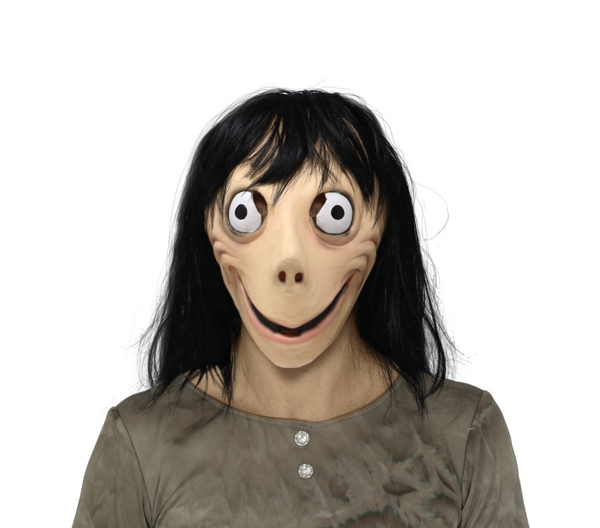 Scary "Momo Challenge" latex overhead mask. Perfect for Halloween or any scary themed party!