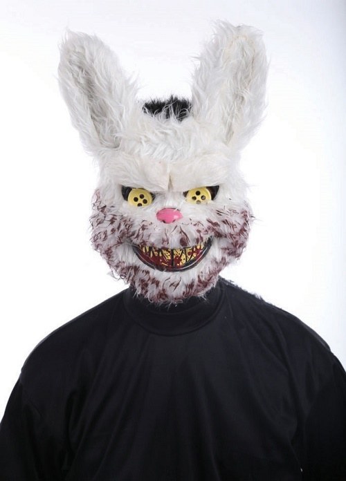 Creepy Snowball bunny face mask with faux fur and elastic band to hold the mask securely onto your face.