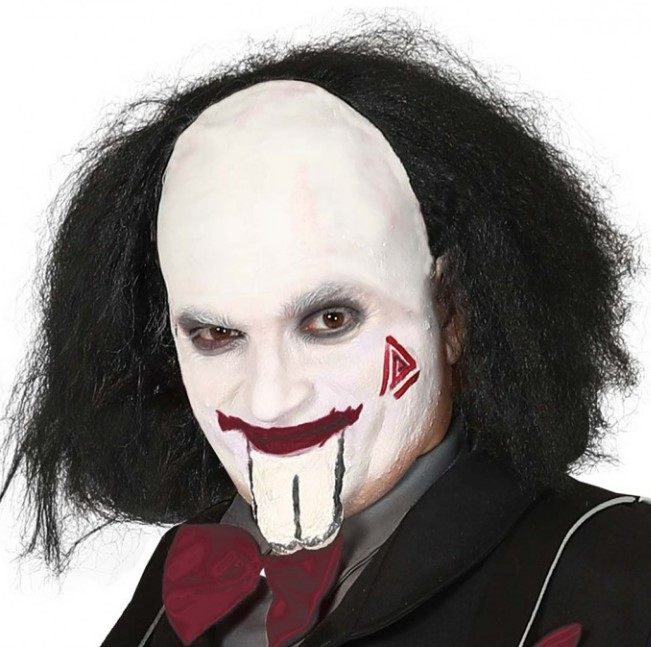 Give everyone a chill this Halloween when you dress up as Billy, the Jigsaw Killer from SAW and transform any costume with this Bald Wig with Black Hair. Complete the look with face paint and a matching SAW Costume and you are ready to terrify all trick or treaters.