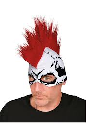 The Skull Hero Mask is an overhead white and black mask with red mohican.