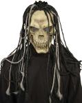 Latex Skull face Mask with eyes and teeth detailing and long black and grey dreads. Mask also features a elastic band to hold the mask securely onto your face.