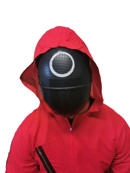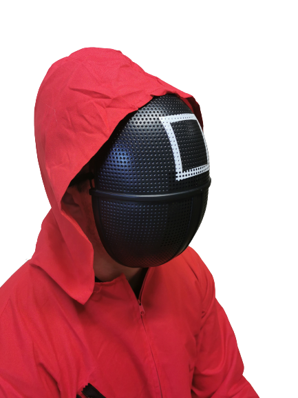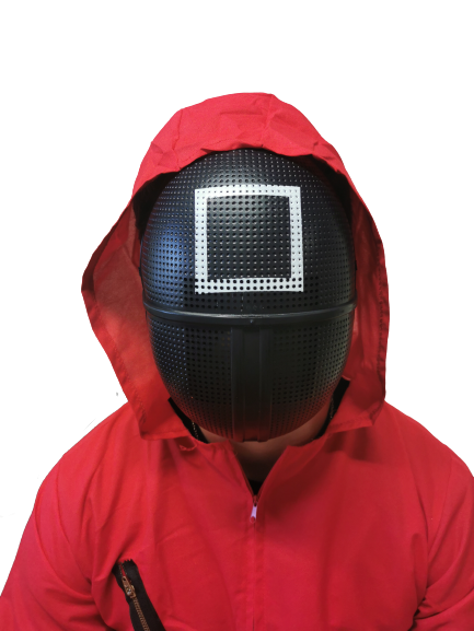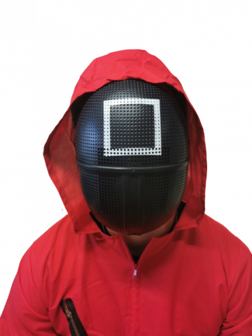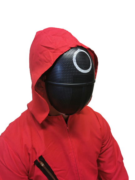 Squid Guard Masks can be paired with a red jumpsuit to recreate the guards look from the Squid Games series.