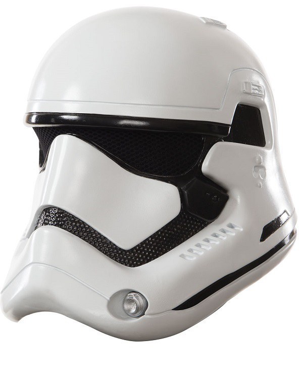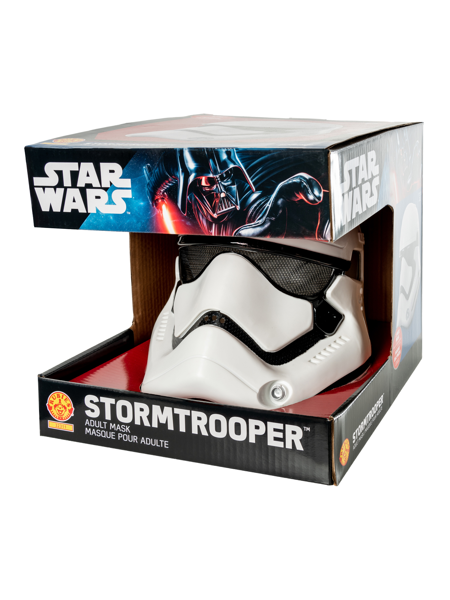 Star Wars Storm Trooper 2 Piece Mask, rigid molded plastic front and back pieces snap together. The mask features mesh-covered eye openings and foam pads inside for comfort.