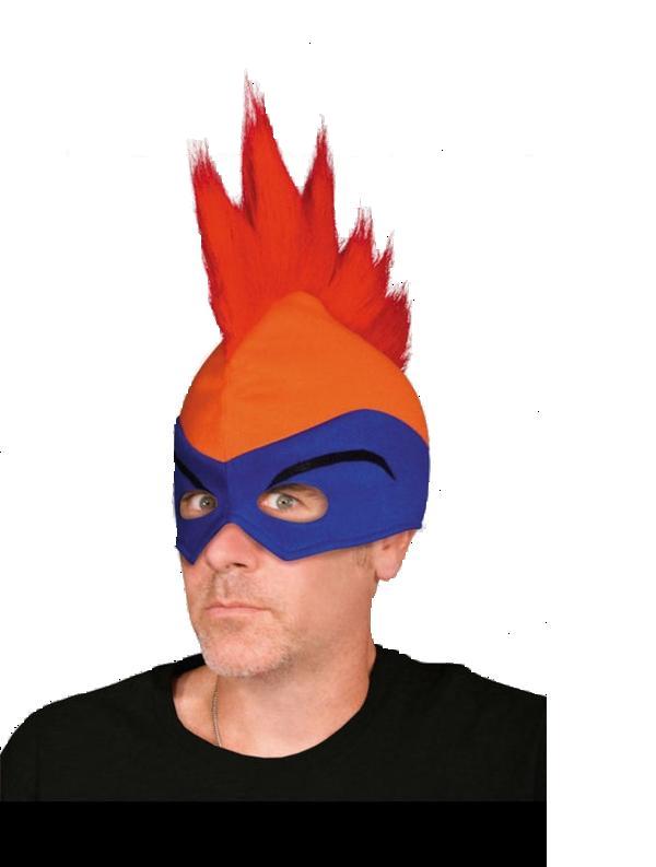 The Super Hero Mask is an overhead orange and blue mask with orange mohican.