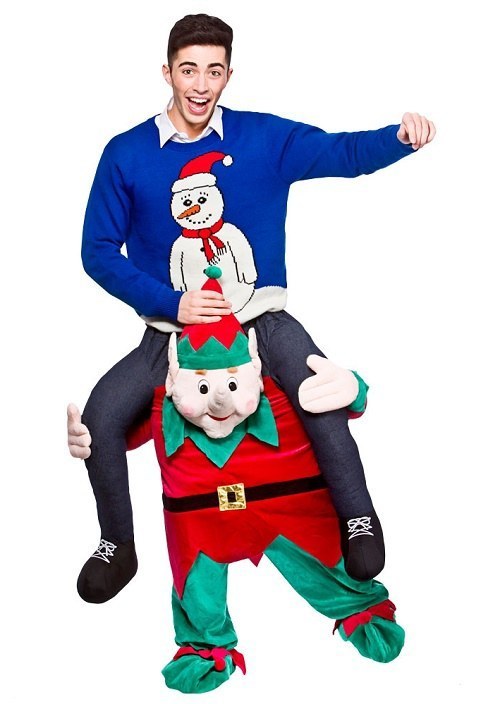 Our top selling christmas costume - the Carry Me Elf Costume consists of one piece elf suit with false human legs. Remember when Christmas jumpers were actually novel? This is the new hot topic in Christmas outfits.
