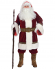 Included in this premium quality Santa suit is a hooded velvet 3/4 length coat with satin lining and a fur trim. This jacket features Old World embroidered accents, belt loops and a zipper front closure.