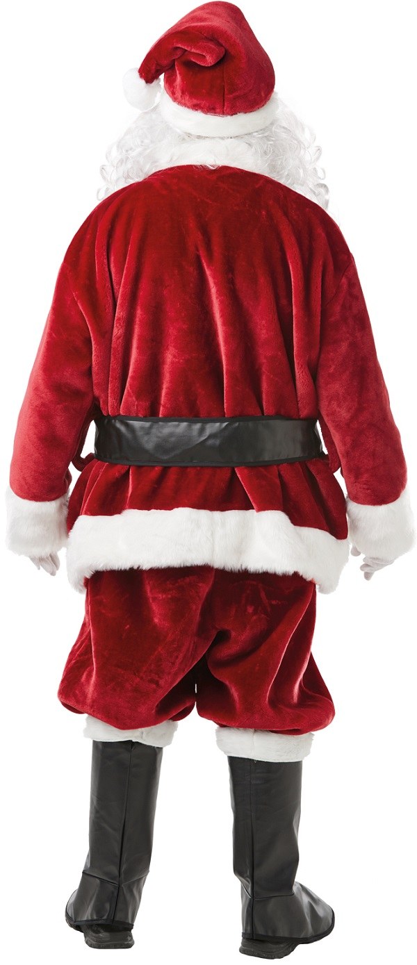 Crimson Santa Suit includes a lux-sealed jacket trimmed in faux fur fabric with zipper front. Also included is a pair of trousers and a belt with a 5" buckle. This festive costume also includes a pair of faux fur trimmed boot tops, and a hat.