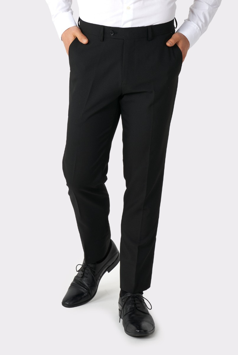 To complement this stand out blazer comes a pair of black trousers with 2 back button-through pockets, 2 Side pockets and belt looks.