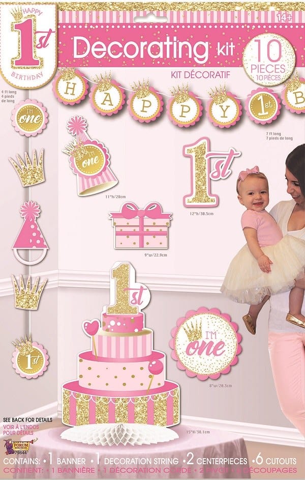 Celebrate your little princess 1st Birthday Party with our 1st Birthday Decorating Kit.
