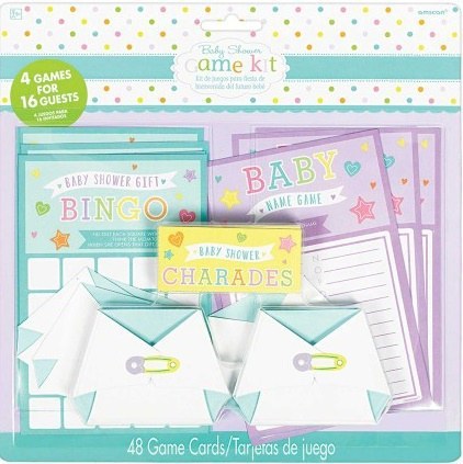 Baby Shower Game Kit includes 4 games for 16 guests.