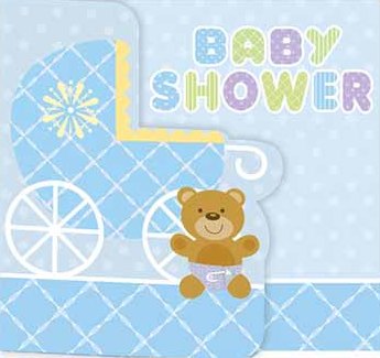 Pack of 8 Baby Shower Invitations with 8 blue envelopes.