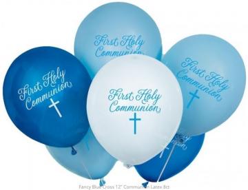 12'' Blue First Holy Communion Latex Balloons - 8 Pack