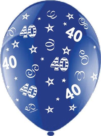 40th Birthday Blue Latex Balloons - bag of 25 diameter 27.5cm/11"