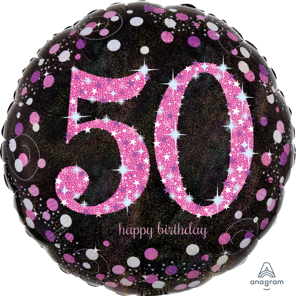 50 Happy Birthday Balloon is a foil balloon and is 18"/46cm in width.