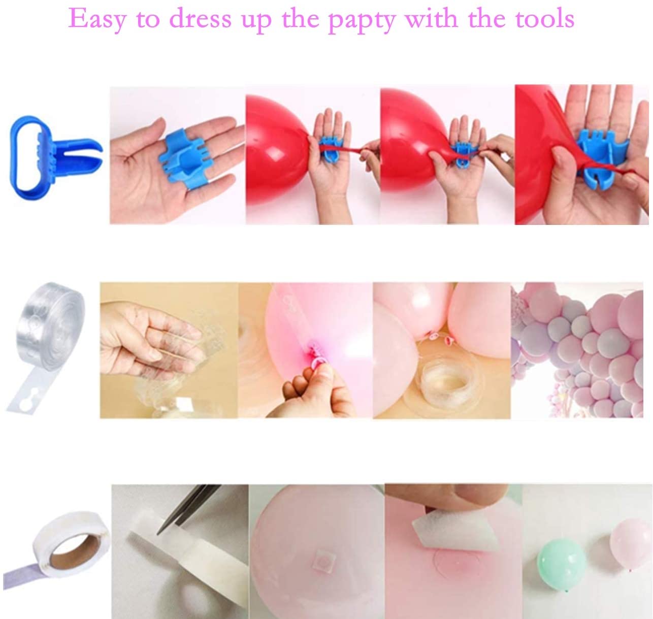 - Package Include: 1 x Balloon Air Pump,1 x Extend hose,1 x User Manual,3 x 5m long balloon decorating strip tape,2pcs balloon tying tool(Random Color),3 x 100 dot glue,2 x 10m long white ribbon