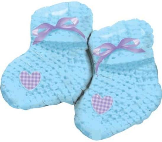 Baby boy booties balloon is a blue balloon in the shape of cute baby booties, this balloon is 35"/89cm wide