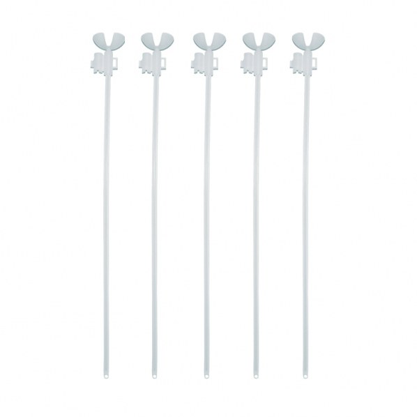 Pack of 6 White Balloon Stick and Cups. Sticks measure 14" long.