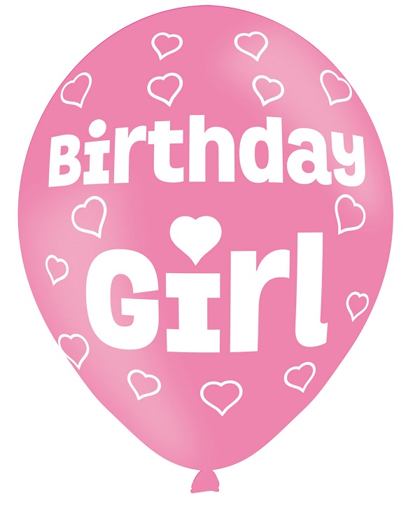 Pack of 6 Birthday Girl Latex Balloons. 11"(27.5cm) when inflated. These balloons are suitable for use with helium.